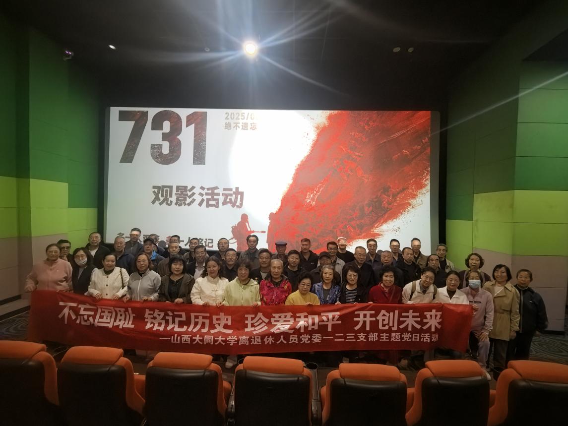 为纪念中国人民抗日战争暨世界反法西斯战争胜利80周年,进一步深化爱国主义教育,增强党员干部的历史责任感和使命感,离退休人员各党支部于9月23日—28日开展了“不忘国耻 铭记历史 珍爱和平 开创未来”主题党日活动,组织支部党员观看电影《731》。